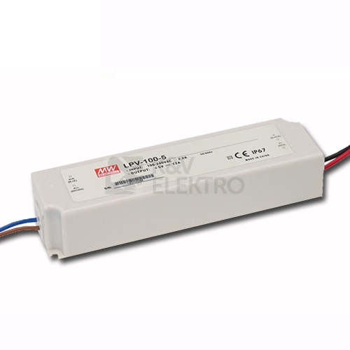 LED transformátor elektronický, napěťový stabilizovaný DC 5V/100W pro napájení PARALELNĚ zapojených LED svítidel, LED žárovek. Trafo udržuje konstantní napětí 5V. Má zabudované pojistky proti přehřátí, zkratu a přetížení. Technická data: vstupní napětí 230V AC/50 Hz výkon 100W výstupní napětí 5 V DC stupeň ochrany krytem IP67 ochrana proti zkratu ochrana proti přetížení