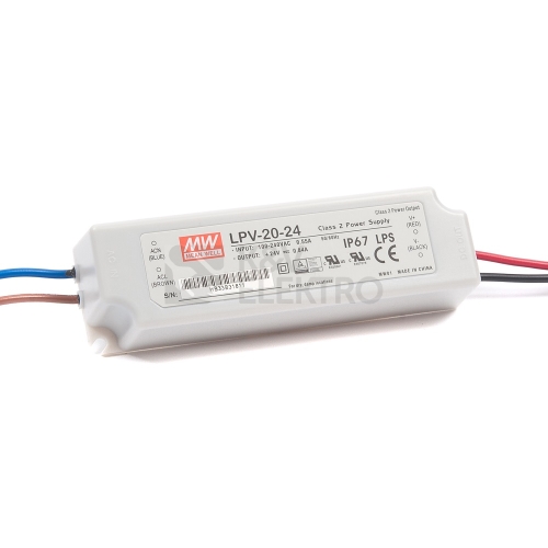 LED transformátor elektronický, napěťový stabilizovaný DC 24V/20W pro napájení PARALELNĚ zapojených LED svítidel, LED pásků, LED žárovek. Trafo udržuje konstantní napětí 24V. Má zabudované pojistky proti přehřátí, zkratu a přetížení. Technická data: vstupní napětí 230V AC/50 Hz výkon 20W výstupní napětí 24 V DC stupeň ochrany krytem IP67 ochrana proti zkratu ochrana proti přetížení