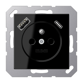 ZASUVKA 230V, USB-A + USB-C, CERNA PLAST