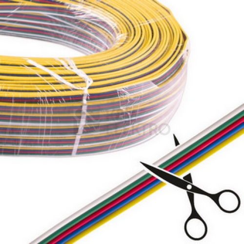 5-žilový kabel s vodiči AWG 22, barva červená/zelená/modrá/bílá/žlutá. Kabel obsahuje pět měděných vodičů o průřezu 0,33 mm2. Používá se k připojování a propojování RGB+W a RGB+WW LED pásků. Při zapojení volte maximální délku a vhodný průřez vodiče vždy s ohledem na přípustný úbytek napětí, který na vodiči vzniká průchodem proudu. Základní balení 100m, prodej na míru.