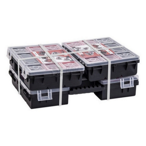 Rozměry setu (Š x V x H): 284 x 100 x 192 mmRozměry organizéru C200 (Š x V x H): 192 x 50 x 143 mmRozměry organizéru C300 (Š x V x H): 284 x 50 x 192 mm Set se skládá ze 2 organizérů C200 a 1 organizéru C300. Transparentní víko, uvnitř přihrádky různých velikostí.Organizér nářadí Tandem C 300 + 2 x organizér nářádí Tandem C 200Tandem C 300:- 8 ks přestavitelných plastových boxů čtyř různých velikostí s průhledným víkem- integrované držadlo- transparentní uzavíratelné víkoTandem C 200:- 4 ks přestavitelných plastových boxů tří různých velikostí s průhledným víkem- integrované držadlo- transparentní uzavíratelné víko- profesionální organizéry z odolného plastu- přestavitelné plastové boxy různých velikostí- polykarbonátové transparentní víko, které vám usnadní přehled nad rozložením dílků v organizéru- exkluzivní design, efektní barevné provedení- odolné plastové provedeníSet organizérů nářadí Tandem C 300 a C 200 slouží k přehlednému uložení a jednoduchému přenášení drobného, především spojovacího materiálu, jako jsou šrouby, matice, vruty, hmoždinky, hřebíky, ale i elektronických součástek, apod.