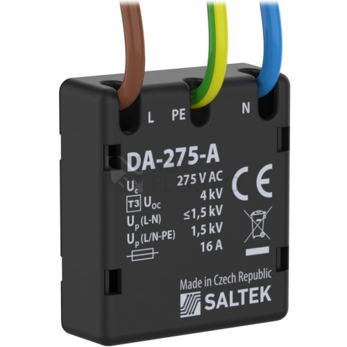 Akustická signalizace poruchy, přepěťová ochrana pro dodatečnou montáž do přístrojů, strojů, zařízení apod., instalace do rozvodů nn v blízkosti chráněného zařízení, k ochraně všech druhů elektrických a elektronických zařízení nn proti pulsnímu přepětí, lze použít i pro jednofázové napájecí sítě s oddělovacím transformátorem, při montáži není nutné dodržet zapojení vodičů L,N