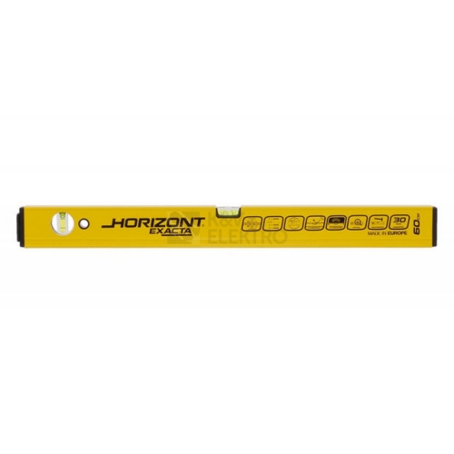 Horizont EXACTA 2 libely PŘESNOST 0,3MM/M = 0,017° (V ZÁKLADNÍ POLOZE) zesílený ALU profil 2,2mm frézovaná základna kapalina v libelách UV stabilizovaná a fluorescenční optická horizontální libela - snadné a přesnější měření dvojité kroužky v libele umožňují nastavit sklon 2% vodováha je odolná proti provozním nárazům KAŽDÝ KUS ELEKTRONICKY TESTOVÁN
