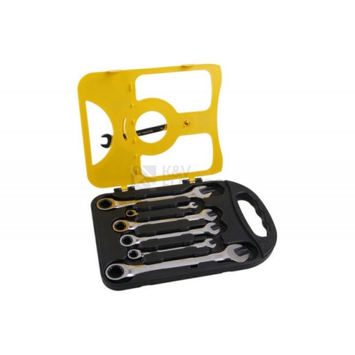 Sada nejpoužívanějších ráčnových klíčů s rohatkou (ráčnou) Klíče jsou vyrobeny kováním z kvalitní chrom-vanadové oceli. Tato ocel je zušlechtěná na požadované vlastnosti a povrchově upravená matným tvrdochromem pro dosažení optimální povrchové tvrdosti a odolnosti vůči korozivním vlivům. Kvalitou, tvrdostí a přesností přesně odpovídají normě DIN/ISO.