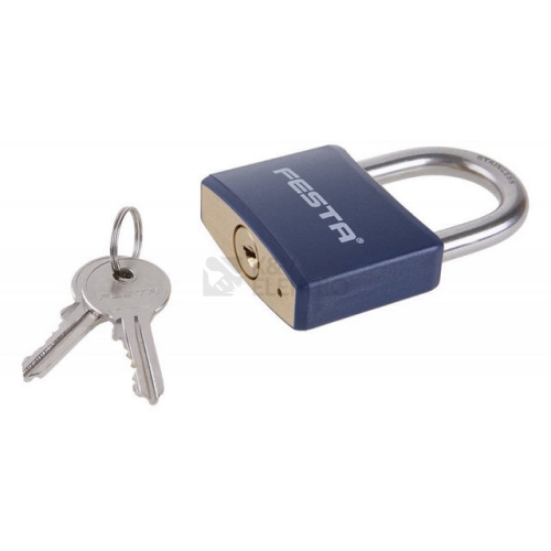 Visací zámek FESTA 23312 s mosazným tělem a nerezovým obloukem. Mosazné tělo zámku je poplastované. K zámku jsou přiloženy 2 klíče. Průměr třmenu oblouku je 8mm