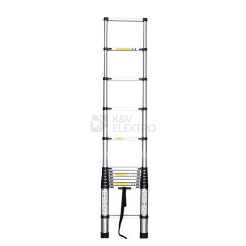 Žebřík teleskopický hliníkový 11 příček maximální zatížení 150 kg umístění pod maximálním úhlem 25° stabilní a pevná konstrukce snadná manipulace - rozložení i složení pevné zámky jednotlivých příček kompaktní rozměry po složení jen 460 x 800 x 70 mm hmotnost 8 kg