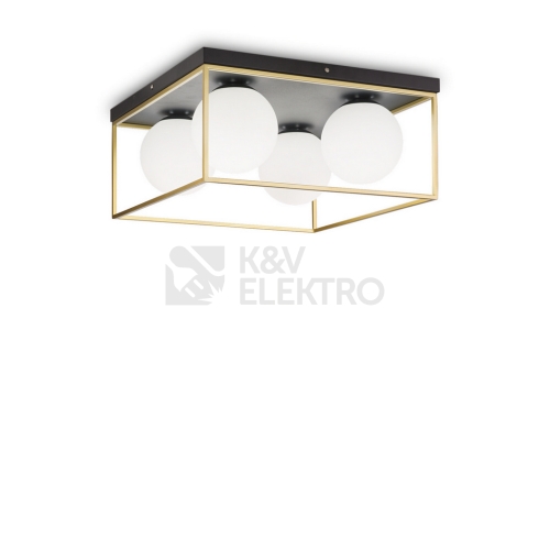 Čtvercové elegantní stropní svítidlo LINGOTTO PL4 z kolekce designového osvětlení Ideal Lux vhodně nasvítí obývací prostory a ložnice v moderním i klasickém interiéru. Světlo tvoří lakovaná kovová stropní základna v matné černé barvě a kovová mosazná konstrukce o délce 45,5 cm. Stínidla z foukaného leptaného bílého skla příjemně rozptylují světlo a uvnitř jsou osazena paticemi E14 o maximálním příkonu 4 x 40 W. Žárovky nejsou součástí balení. Pro úsporu elektrické energie doporučujeme zvolit LED světelné zdroje. Krytí IP20 je vhodné pro použití do interiéru.