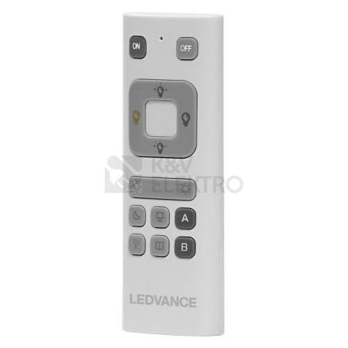 Dálkové ovládání s technologií WiFi pro změnu barev. Vlastnosti produktu: vyp./zap. nebo stmívání. Nastavitelná barva světla prostřednictvím laditelné bílé: teplá bílá až studená bílá. Ovládání barev RGB. Nastavitelné světelné scény. Na baterie (2x AAA baterie). Ovládá až 15 kompatibilních produktů SMART+ WiFi. Síťový protokol: WiFi. Výhody produktu: Bezdrátové ovládání kompatibilních produktů SMART+ WiFi. Ovládání produktů SMART+ Wifi bez použití hlasového ovládání a aplikace. Výběr přednastavených světelných scén pomocí dálkového ovládání. Druh použití: Smart Home uvnitř i venku. Ovládá až 15 kompatibilních produktů SMART+ WiFi bezkontaktním párováním. Výbava / příslušenství: Vyžaduje LEDVANCE SMART+ WiFi APP (pouze pro konfiguraci produktů SMART+ WiFi). Baterie nejsou součástí balení.