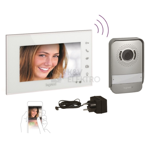 EasyKit – 7“ Wi-Fi telefon s povrchovým vstupním panelem Sada vstupního panelu (krytí IP44) a wi-fi video telefonu 7", napájeného zásuvkovým adapterem. Volání ze vstupního panelu lze přesměrovat na mobilní telefon (prostřednictvím domácí wi-fi a mobilního datového připojení) s aplikací a komunikovat s návštěvou, otevřít jí branku nebo bránu. Kabeláž mezi panelem a telefon pouze 2 vodiče. Volání ze vstupního panelu lze přesměrovat na mobilní telefon s aplikací Door Entry a být tak k dosažení kdekoliv na světě. Sadu lze rozšířit o další 2 libovolné přídavné video telefony Legrand (nelze kombinovat s 2vodičovým systémem Bticino). Napájení zásuvkovým adaptérem. Dodáván se stříškou proti dešti.