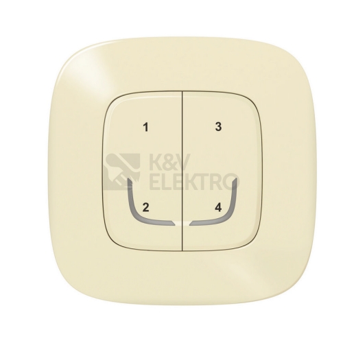 Valena Allure with Netatmo bezdrátový ovládač scénářů "1-4" (baterie CR2032 a oboustranná lepenka součást balení), zadní strana je zcela plochá (lze montovat na zeď, sklo, nábytek pomocí šroubů nebo oboustranné lepenky), scénáře se nastavují pomocí aplikace Home + Control - barva Béžová, dodáván s rámečkem v barvě Béžová. Vyžaduje instalaci startovacího kitu nebo jiného komunikačního modulu/brány.