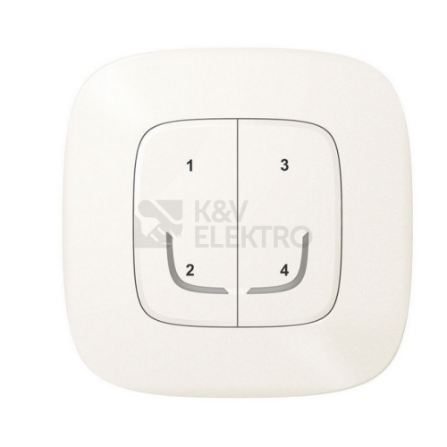 Valena Allure with Netatmo bezdrátový ovládač scénářů "1-4" (baterie CR2032 a oboustranná lepenka součást balení), zadní strana je zcela plochá (lze montovat na zeď, sklo, nábytek pomocí šroubů nebo oboustranné lepenky), scénáře se nastavují pomocí aplikace Home + Control - barva Perleť, dodáván s rámečkem v barvě Perleť. Vyžaduje instalaci startovacího kitu nebo jiného komunikačního modulu/brány.