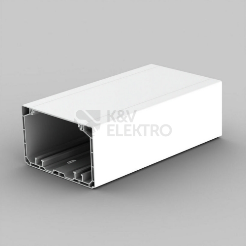 Parapetní kanál PK 110x65 D HF, bílý, 2 m, karton. Pro uložení silových a sdělovacích obvodů. Jednotlivé vedení je možno elektromagneticky odstínit pomocí stínícího kanálu. Lze do něj montovat klasické přístroje.