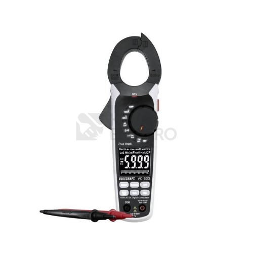 AC/DC proudové kleště Voltcraft VC-533 Pro snadné a rychlé měření stejnosměrných i střídavých proudů až do 1000A Na rozdíl od multimetru není nutné přerušovat obvod. To je ideální pro servis strojů ve skříňových rozvaděčích a také při měření vysokých proudů v elektrickém vybavení osobních a nákladních automobilů. Funkce multimetru Přístroj disponuje funkcemi měření napětí, frekvence, teploty, kapacity a odporu s automatickou volbou rozsahu měření, umožňuje také provádět test diod, měření TRMS a akustický test průchodnosti. Navíc je vybaven bezdotykovou zkoušečkou napětí (NCV). Kontrastní displej s 6000 body a osvětlenými ovládacími prvky Mimořádně dobře čitelný displej při všech světelných podmínkách. Obzvláště ve skříňových rozvaděčích, které nejsou plně osvětlené, překonává tento model běžné proudové kleště. Na displeji se zobrazují vždy 4místné hodnoty do 5 999 (rozsah zobrazení 6 000 hodnot), a to bez ohledu na to, na které pozici je desetinná čárka. Navíc jsou osvětlena tlačítka a legenda pro otočný spínač. Displej se sloupcovým grafem Pulzující naměřené hodnoty se velmi přehledně zobrazí na sloupcovém grafu. Tlačítko Hold jednoduše ovladatelné palcem Tlačítko Hold slouží k ukládání hodnot, když je nelze odečíst z displeje během měření. Zde je toto tlačítko umístěno ergonomicky v pozici palce. Nemusí se hledat jako u jiných klešťových multimetrů. Osvětlení místa měření V případě potřeby lze zapnout bílou LED, která cíleně osvětlí prostor přímo před kleštěmi. Protiskluzová úprava Proudové kleště Voltcraft VC-533 mají vždy jistý kontakt s podkladem. Nežádoucímu sklouznutí na površích, které nejsou vodorovné, účinně brání pogumování krytu. Odolný a praktický Díky dvoukomponentnímu krytu s integrovanou ochranou z měkké gumy lze měřicí přístroj používat i v náročných podmínkách. Pogumovaná svrchní vrstva krytu navíc napomáhá dobrému úchopu. Připraven pro pásové systémy Standardní závit pro připojení k bezpečnostnímu držáku nebo pásovému systému je zapuštěn v krytu přístroje. Měřič lze při práci ve větší výšce zajistit proti nechtěnému pádu. Včetně měření teploty Proudové kleště jsou vybaveny funkcí pro měření teploty pomocí termočlánků typu K. Dodávaný snímač teploty vzduchu lze volitelně měnit za všechna teplotní čidla Voltcraft typu K, abyste mohli měřit teplotu směsí, kapalin nebo povrchů v rozsahu až do 1000 °C. Přesné výsledky díky měření skutečné efektivní hodnoty (True RMS) Měření skutečné efektivní hodnoty True RMS umožňuje provádět přesná měření nesymetrických napětí a proudů odchylujících se od základního tvaru sinusoidy. Nesymetrická napětí se většinou objevují u regulátorů výkonu, jako jsou stmívače, regulátory počtu otáček, taktované spínací regulátory, pulzní nabíječky nebo elektronické regulátory jízdy v modelářství atd. Běžné měřiče středních hodnot někdy při těchto speciálních aplikacích vykazují velmi vysokou chybu měření. Spolehlivé výsledky měření díky tovární kalibraci V rámci zajišťování kvality se všechny měřicí přístroje Voltcraft® kalibrují ve výrobě dle továrních standardů. Tím je zaručena vysoká kvalita a dodržování tolerancí uvedených v technických údajích. K výrobku není vydáván certifikát. Speciální funkce: CAT III 600 V AC 6000 hodnot True RMS 8 měřicích funkcí: napětí, proud, odpor, teplota, kapacita, frekvence, test průchodnosti, test diod Vč. osvětlení místa měření Charakteristika: Funkce Data Hold Automatické vypnutí Měření délky impulsu Měřicí funkce: napětí, proud, odpor, teplota, kapacita, frekvence, test průchodnosti, test diod Bezdotykový test napětí (NCV) Funkce Zero Rozsah dodávky: Proudové kleště VC-533 Bezpečnostní měřicí kabely Termočlánek typu K, vzduchové čidlo (-20 až +230°C) Měřicí adaptér typu K Pouzdro pro skladování 3x baterie AAA (1,5 V) ##VIDEO:https://www.youtube.com/embed/8O9y253NZPk##
