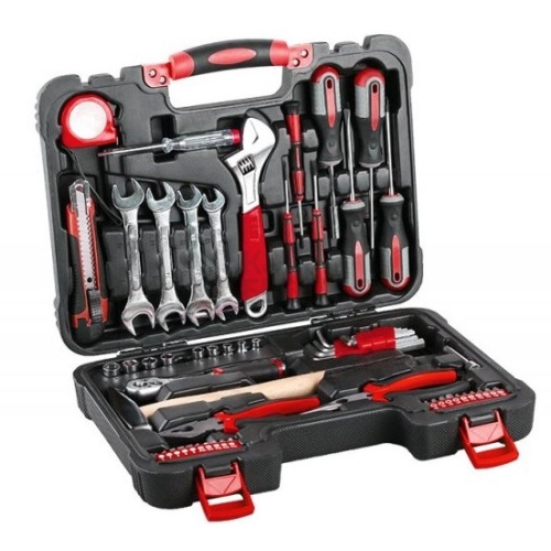 Univerzální sada nářadí osazená nejčastěji používaným nářadím, které by nemělo chybět v žádné domácnosti přehledná organizace, snadná manipulace a prostorově nenáročné uložení v plastovém kufru
