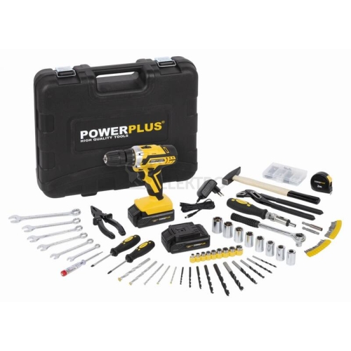 AKU vrtačka POWERPLUS POWX00825 je perfektním pomocníkem každého kutila. Nabízí 2 rychlosti, rychloupínací sklíčidlo, rychlé zastavení, přepínač zpětného chodu a měkčené držadlo. Získáte s ní i 2 akumulátory Li-Ion s kapacitou 1 500 mAh a bohaté příslušenství. Specifikace AKU vrtačky POWERPLUS POWX00825 s 133 ks příslušenství AKU vrtačka POWERPLUS se neztratí v kůlně příležitostného i pravidelného kutila. Její maximální vrtací výkon do oceli je 10 mm a do dřeva 20 mm. Otáčky naprázdno dosahují na 1. rychlostní stupeň 0 až 400 a na 2. stupeň 0 až 1 400 ot./min. Jelikož dostanete společně s AKU vrtačkou POWERPLUS POWX00825 dva Li-Ion akumulátory, nemusíte přerušovat práci v případě vybití jednoho z nich. Nabití jednoho akumulátoru zabere 3 až 5 hodin. AKU vrtačka je vybavena LED pracovním světlem a LED ukazatelem stavu baterie. Díky tomu budete mít přehled jak o zrovna prováděné práci, tak i o tom, kolik toho zhruba ještě stihnete udělat, než bude třeba vrtačku „přebít“. Součástí dodávky je také bohaté příslušenství: 1x nabíječka 5x vrták na dřevo (4/5/6/8/10 mm) 5x vrták na beton (4/5/6/8/10 mm) 5x vrták na ocel (4/5/6/8/10 mm) 1x magnetický držák bitů 24x bity 25mm 1x ráčna 1/2" 1x ráčnový držák bitů 9x nástrčný klíč 1/4" 8x nástrčný klíč 1/2" 1x adaptér 1/4" 2x šroubovák SL6 a PZ2 1x svinovací metr 2m 1x kombinované kleště 160mm 1x sikovky 240mm 1x kladivo 6x klíče (8/10/12/13/14/17mm) 1x voltmetr 12x hmoždinka 5mm 12x hmoždinka 6mm 6x hmoždinka 8mm 12ks šroubků do dřeva 5mm 12ks šroubků do dřeva 6mm 6ks šroubků do dřeva 8mm BMC kufr Nabíječka není součástí balení. Kromě AKU vrtaček nabízíme i další AKU i elektrické nářadí, jako jsou například vrtací a sekací kladiva, brusky, pily a další. Naše kompletní nabídka nejrůznějšího nářadí a měřicích přístrojů je však mnohem bohatší. Pořídíte i nás třeba šroubováky, odizolovací nářadí, kombinované kleště, metry, vodováhy, lasery a podobně. Technické detaily AKU vrtačky POWERPLUS POWX00825 AKU vrtačka POWERPLUS POWX00825 je konstruována pro jmenovité napětí 20 V a její hmotnost i s akupackem je cca 1,3 kg. Maximální utahovací moment činí 35 Nm (nastavení momentu 18+1) a průměr sklíčidla 10 mm. Vrtačku neponechávejte delší dobu na slunci a skladujte jej v temnu a suchu. Neukládejte ji v plastikových pytlích, neboť by se v nich mohla hromadit vlhkost. Certifikáty výrobku AKU vrtačka Powerplus POWX00825 20V 2x aku 1,5Ah + 133ks příslušenství splňuje příslušné normy ČSN. ##VIDEO:https://www.youtube.com/embed/8O9y253NZPk## O značce POWERPLUS Uživatelé výrobků značky POWERPLUS oceňují především skvělý poměr cena/výkon i kvalita. POWERPLUS spadá pod belgickou společnost VARO, která funguje již od roku 1958, a v ČR ji zastupuje firma LASER CUT s. r. o. POWERPLUS nabízí AKU i kabelové nářadí (jako jsou vrtačky, brusky, drážkovačky, hoblovky atd.), dále pak například sekačky, elektrocentrály, domácí vodárny, čerpadla, tlakové myčky, LED reflektory a mnoho dalšího.