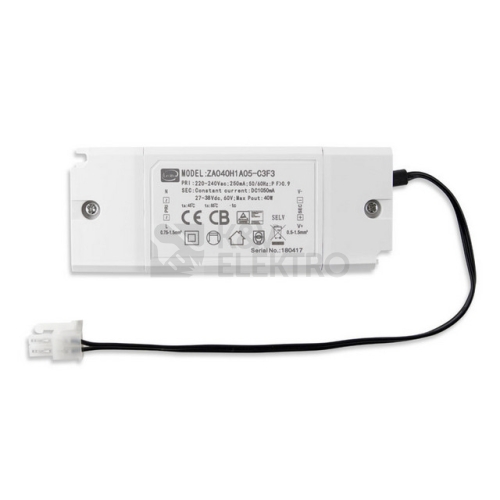 Neregulovatelný SELV zdroj konstantního proudu k LED panelům Office. Maximální výkon 40W, PF 0,9, výstupní napětí DC27-38V, výstupní proud 1050mA. Rozměry 115x45x30 mm, IP20, materiál: plast. Zdroj disponuje integrovanou ochranou proti zkratu i přetížení.