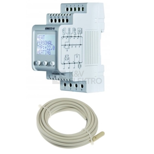 Termostat, který elektroinstalatérovi pokryje většinu požadavků na řešení regulace. EB-Therm 800 je multifunkční termostat pro montáž na DIN lištu, který umožňuje výběr ze čtyř různých modů provozu. Od podlahového vytápění v obytných prostorách po průmyslové procesy s vysokými teplotami. Tento termostat jsme přizpůsobili tak, aby byl pro vás uživatelsky přívětivý, což je patrné na jednoduchosti, od instalace po navigaci v nabídce a nastavení. Vytápění Toto provozní nastavení se používá pro obytné prostory, kanceláře, sklady apod. Pomocí tohoto provozního nastavení můžete ovládat vytápění v teplotním rozsahu od +5 do +45 °C. Na výběr jsou čtyři různé programy úspory energie. Chlazení Toto provozní nastavení se používá pro obytné prostory, kanceláře, sklady apod., kde pokojový termostat ovládá klimatizaci nebo jiné chlazení v rozsahu +5 až +45 °C. Na výběr jsou čtyři různé programy úspory energie. Průmysl Toto provozní nastavení se používá k řízení teploty průmyslových procesů. Regulujte vytápění v rozsahu mezi -15 až +75 °C, mezi +0 až +170 °C, nebo omezte rozsah na -10 až +15 °C jako ochranu proti zámrazu. Máte také možnost upravit hysterezi teploty a nastavit alarm nízké nebo vysoké teploty. V tomto provozním nastavení máte k dispozici tři různé programy. Max. / Min. Provozní nastavení Max. / Min. se používá hlavně k udržení ploch na střechách a podlahách bez sněhu a ledu. Teplotní rozsah lze nastavit v rozmezí -20 ° C až +10 ° C. Pro nejlepší možnou funkci a energeticky úsporný systém je vhodná kombinovaná regulace teploty a vlhkosti v rozsahu Max. / Min. pomocí příslušného střešního čidla (8935075) nebo čidla pro venkovní plochy (8580101). Jednoduché použití EB-Therm 800 má jasný displej s trvalým osvětlením. V režimu zobrazení vidíte souhrn nejdůležitějších nastavení a stav funkcí. Ke všem nastavením můžete snadno přistupovat prostřednictvím hlavní nabídky. Pomocí tlačítek můžete také přímo z režimu zobrazení získat řadu rychlých příkazů až po různé funkce. Například můžete zjistit čas aktivace termostatu pouhým stisknutím tlačítka. Jedná se o vynikající způsob řízení spotřeby energie. Termostat také umožňuje zapnout rádiové dálkové ovládání, abyste mohli pomocí mobilního telefonu zkontrolovat určité funkce, například když nejste na místě. Parametry termostatu: teplotní rozsah: -20 °C až +170 °C rozdělený na 2 rozsahy dolní rozsah: -20 °C až +75 °C - typ čidla NTC horní rozsah: 0 °C až +17 °C - typ čidla PTC vlastní spotřeba: 2,5 W spínací výkon: 3680 W / 16 A / 230 VAC připojovací napětí 230 VAC ±10% ~ 50Hz hystereze: nastavitelná ±0,3 až 10 °C rezerva chodu: 50 h teplotní čidlo: 3 m, maximální prodloužení 50 m, 2 x 1,5 mm² rozměr termostatu: 93 x 35 x 70 mm rozměr displeje: 24 x 19 mm montáž: standardní DIN-lišta EN 50022-35. alarm relé: 2 A/120 VAC normálně sepnuto IP 20 Testovací hodnoty pro NTC-čidlo -10 °C 42.5 kΩ 0 °C 27.3 kΩ +10 °C 18.0 kΩ +20 °C 12.1 kΩ +25 °C 10.0 kΩ Testovací hodnoty pro PTC-čidlo 70 °C 1392 Ω 90 °C 1585 Ω 110 °C 1792 Ω 130 °C 2012 Ω 150 °C 2247 Ω