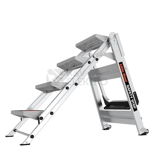Profesionální schůdky s bezpečnostním madlem a protiskluzovou podložkou, pevná konstrukce s kolečky pro snadnou manipuaci. 4 schůdky, plošina ve výšce 89 cm