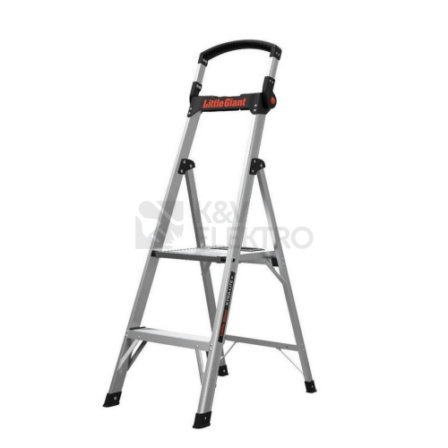 Velice lehký a stabilní hliníkový schůdkový žebřík s unikátním organizérem pro nářadí a materiál v horní rukojeti žebříku. Nosnost až 170 kg. 2 schůdky, výška stání 56 cm