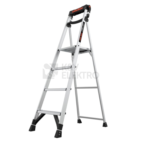 Velice lehký a stabilní hliníkový schůdkový žebřík s unikátním organizérem pro nářadí a materiál v horní rukojeti žebříku. Nosnost až 170 kg. 4 schůdky, výška stání 114 cm