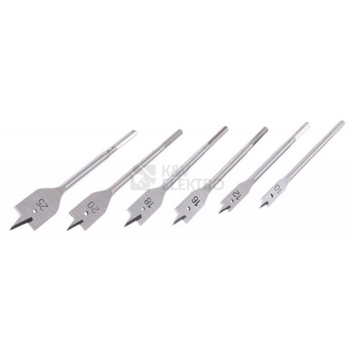 Sada kopinatých vrtáků 10, 12, 16, 18, 20, 25 mm, použití: pro vrtání otvorů do měkkého i tvrdého dřeva, uchycení: šestihranná stopka - zamezuje protáčení, balení: PVC pouzdro.