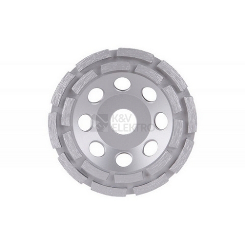 Brusný diamantový kotouč FESTA -dvouřadý, robustní nosný talíř je z pevné slitiny, speciální konstrukce uchycení diamantových segmentů k nosnému disku kotouče, vysoký obsah diamantového prachu v segmentech, použití : pro suché i mokré broušení mramoru, žuly, cihel, zdiva, přírodního i umělého kamene, obkladů, dlažeb, betonu..., tvar a provedení segmentů je vhodné pro hrubé a rchlé obrušování, rozměry : uvedeny v názvu výrobku, balení : papírový box s eurootvorem.