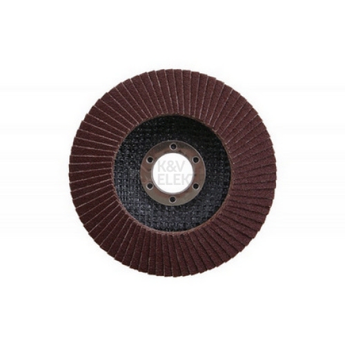 Lamelový kotouč, zrnitost: 100 druh zrna: oxid hlinitý pojivo: umělá pryskyřice podkladový materiál: pružná tkanina - 100% bavlna (240-260g/m2) provedení: vyhnutý otvor : 22,2mm, max. pracovní rychlost : 80m/s, max. přípustné otáčky: 13300 1/min, použití : broušení, obrušování, odrezování, odstraňování nátěrů, ...., rozměry : uvedeny v názvu výrobku.
