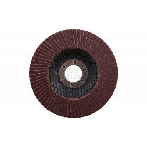 Lamelový kotouč, zrnitost: 120 druh zrna: oxid hlinitý pojivo: umělá pryskyřice podkladový materiál: pružná tkanina - 100% bavlna (240-260g/m2) provedení: vyhnutý otvor : 22,2mm, max. pracovní rychlost : 80m/s, max. přípustné otáčky: 13300 1/min, použití : broušení, obrušování, odrezování, odstraňování nátěrů, ...., rozměry : uvedeny v názvu výrobku.