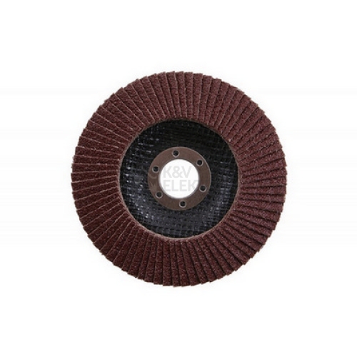 Lamelový kotouč, zrnitost: 40 druh zrna: oxid hlinitý pojivo: umělá pryskyřice podkladový materiál: pružná tkanina - 100% bavlna (240-260g/m2) provedení: vyhnutý otvor : 22,2mm, max. pracovní rychlost : 80m/s, max. přípustné otáčky: 13300 1/min, použití : broušení, obrušování, odrezování, odstraňování nátěrů, ...., rozměry : uvedeny v názvu výrobku.