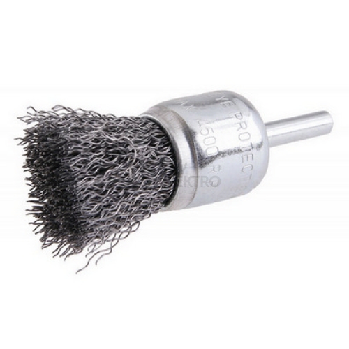 Rotační kartáč - vlnitý, kartáče FESTA zaručují kvalitní použité materiály i zpracování, drát 0,3 mm průměr 25mm, stopka 6 x 20 mm, pozinkované tělo kartáče, počet drátů: 150, délka drátu : 20 mm, max. přípustné otáčky : 4500 1/min, použití : lehké brousící práce a čištění na na hůře přístupných místech, balení : blistr s eurootvorem.