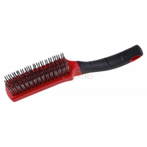 Ocelový kartáč - ruční, ocelový drát - pozinkovaný, plastové tělo, délka 270 mm, ergonomicky tvarovaná rukojeť, 5 řad, počet drátů : 1800, použití: k číštění železných kovů jako je ocel, nerez, litina, zdrsnění, a hrubé odstranění starých nátěrů, ….