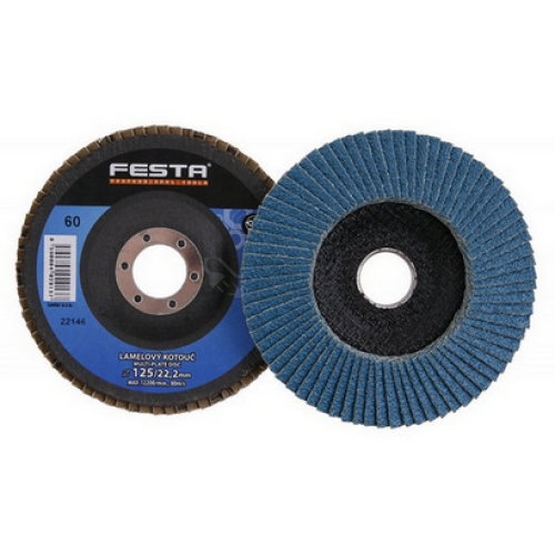 Zrnitost: 60 Druh Zrna: oxid zirkoničitý Pojivo: umělá pryskyřice Podkladový materiál: pružná tkanina-100% bavlna (240-260g/m2) Provedení: vyhnutý vnitřní průměr: 22,2mm Max. Pracovní rychlost: 80m/s Max. přípustné otáčky: 12200 1/min.