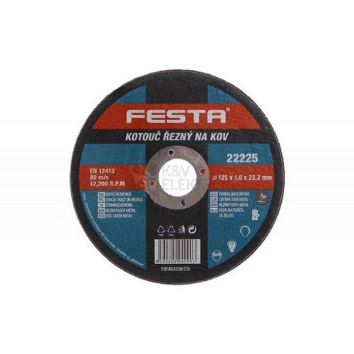 Druh Zrna: Korund Pojivo: Syntetické pryskyřice na bázi aldehydu Provedení: rovný Max. Pracovní rychlost: 80m/s Max. přípustné otáčky: 12200 1/min Pro výšení pevnosti armováno dvouvrstvou sklotextilní vložkou. Použití na kov, litinu, NEREZ.