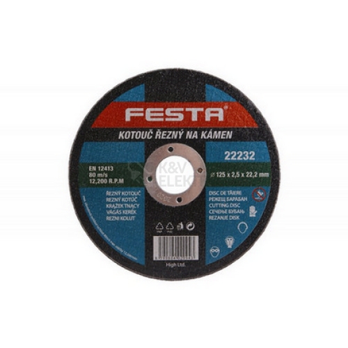 Druh Zrna: Karbid křemíku Pojivo: Syntetické pryskyřice na bázi aldehydu Provedení: rovný Max. Pracovní rychlost: 80m/s Max. přípustné otáčky: 12200 1/min Pro zvýšení pevnosti armováno dvouvrstvou sklotextilní vložkou.