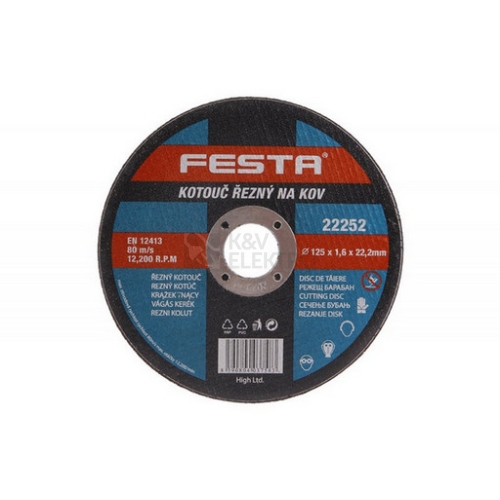 Druh Zrna: Korund Pojivo: Syntetické pryskyřice na bázi aldehydu Provedení: Rovný Max. Pracovní rychlost: 80m/s Max. přípustné otáčky: 12200 1/min Pro zvýšení pevnosti armováno dvouvrstvou sklotextilní vložkou. Použití na kov, litinu, NEREZ.