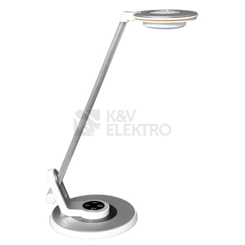 Moderní stmívatelná kancelářská lampička pro osvětlení každého pracovního prostoru stolu. Využívá vysoce úspornou SMD LED technologii s dlouhou životností. Na kulaté základně lampy s imitací broušeného hliníku je umístěn dotykový panel s tlačítky i pro stmívání a změnu teploty chromatičnosti.Užitečnou funkcí navíc je možnost nabíjení mobilních přístrojů přes vestavěný USB port.