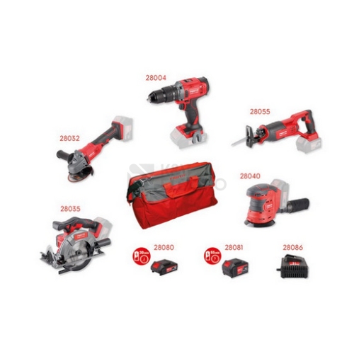 Výhodná sestava AKU nářadí FESTA Power tools s praktickou taškou zdarma sestava nejběžněji používaných AKU strojů pro různé druhy prací, stroje jsou součástí systému FESTA SHARE20V s možností využívat Li-ion batarie 2.0 Ah a 4.0 Ah ve všech strojích součástí sady je i rychlonabíječka a baterie 4.0 a 2.4 Ah pro běžnou práci je baterie s kapacitou 2.0 Ah (28080) dostačující - nabíjecí čas 40 min., pro práci s předpokladem větší zátěže, doporučujeme použít baterii s kapacitou 4.0 Ah (28081) - nabíjecí čas 90 min Li-ion technologie použitá v bateriích FESTA Power x tools nabízí možnost dobíjet baterie kdykoliv - bez snižování jejich kapacity, u Li-ion baterií také dochází k jen velmi pomalému samovybíjení stroje v sadě 28004, 28032, 28035, 28040, 28055