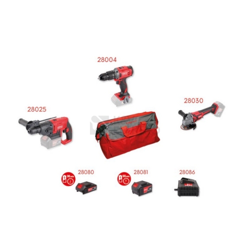 Výhodná sestava AKU nářadí FESTA Power tools s praktickou taškou zdarma sestava nejběžněji používaných AKU strojů pro různé druhy prací, stroje jsou součástí systému FESTA SHARE20V s možností využívat Li-ion batarie 2.0 Ah a 4.0 Ah ve všech strojích součástí sady je i rychlonabíječka a baterie 4.0 a 2.4 Ah pro běžnou práci je baterie s kapacitou 2.0 Ah (28080) dostačující - nabíjecí čas 40 min., pro práci s předpokladem větší zátěže, doporučujeme použít baterii s kapacitou 4.0 Ah (28081) - nabíjecí čas 90 min Li-ion technologie použitá v bateriích FESTA Power x tools nabízí možnost dobíjet baterie kdykoliv - bez snižování jejich kapacity, u Li-ion baterií také dochází k jen velmi pomalému samovybíjení stroje v sadě 28004, 28025, 28030