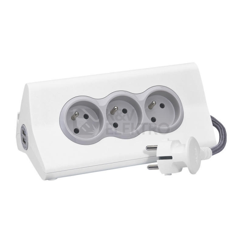 Víceúčelový prodlužovací přívod s držákem tabletu, zásuvka 3x2P+T, ochrana proti přetížení, nabíječka USB A+A, podsvětlené tlačítko vyp/zap, kabel 1,5m, bílá