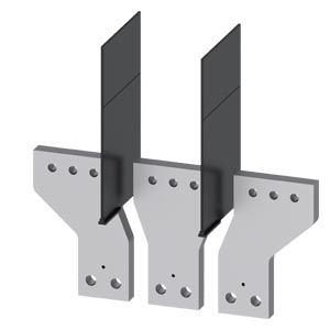 Připojovací sada, přední přívody - rozšířené, Cu/Al pasy / kabelová oka / flexibary, max. šířka pasů a kabelových ok 80 mm, max. tloušťka pasů a kabelových ok 5 mm, 3 ks, izolační přepážky 2 ks, pro 3VA15, 3VA25