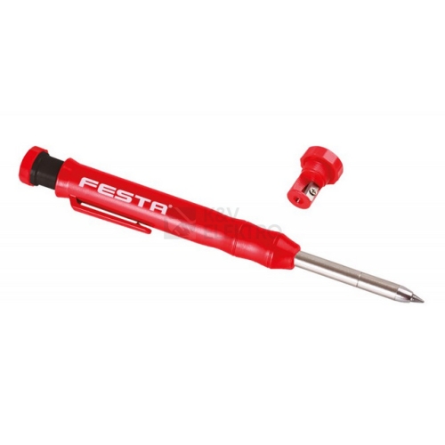 speciální popisovač FESTA s tuhou tvrdosti HB konstrukce popisovače - průměr jen 6 mm - umožňuje přesné značení i na hůře přístupných místech snadný posuv tuhy stiskem horní části, kde se nachází i strouhátko na tuhu náhradní tuhy lze objednat pod číslem 13263