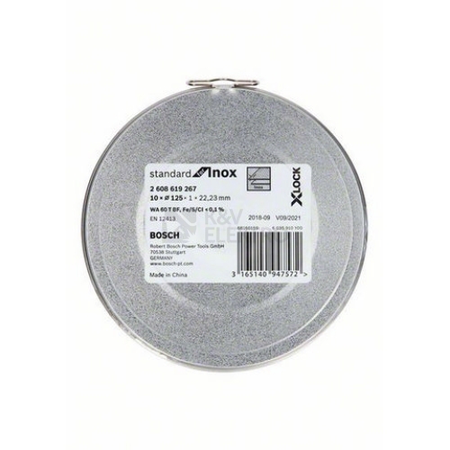 Řezný kotouč Standard for Inox X-LOCK poskytuje spolehlivé řezání nerezové oceli. Tenký disk umožňuje plynulé a snadné řezání. Dále kotouč neobsahuje železitá, sirnatá ani chlorovaná plniva. Řezné kotouče Bosch vyhovují požadavkům na maximální bezpečnost, např. EN 12413. Tento kotouč používejte k řezání nerezové oceli. Díky beznástrojovému systému X-LOCK je výměna řezných kotoučů snadná a rychlá. Řezné kotouče systému X-LOCK jsou také kompatibilní se standardními úhlovými bruskami.