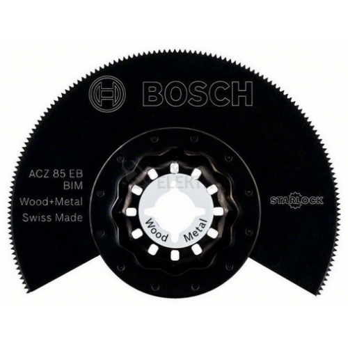 Segmentový pilový kotouč Starlock ACZ 85 EB zajišťuje dlouhou životnost při řezání dřeva a nekaleného kovu. Bimetalové tělo kombinuje čepel z uhlíkové oceli a zuby z oceli HSS. Odolává opotřebení a vysoké teplotě při řezání nekalených kovů a abrazivních materiálů. Patentovaná technologie kruhového svařování spojuje tavným spojem pásky z oceli HSS s tělem z uhlíkové oceli a vytváří nepoddajné vyčnívající zuby, které eliminují zasekávání a vznik opálených míst a poskytují tak spolehlivé výsledky při opakovaném používání. Tento segmentový pilový kotouč je určen ke zkracování dveřních rámů a menších říms, k vyřezávání laminátu a parket, ke zkracování dřeva a řezání nekaleného kovu, plastů a vrstvených kovových materiálů. Špičaté konce segmentového pilového kotouče umožňují řezání v úzkých rozích a zajišťují tak konzistentní pokrytí potřeb řezání dřeva. Upínací systém Starlock Snap-In umožňuje rychlou demontáž nástroje a výměnu v pouhých 3 sekundách, a to bez přímé manipulace s kotoučem. Upínací systém zajišťuje maximální přenos výkonu díky trojrozměrně konstruovanému spojení mezi nářadím a nástrojem. Tento produkt je kompatibilní s veškerým nářadím Starlock, Starlock Plus a Starlock Max, jakož i s běžným multifunkčním nářadím.