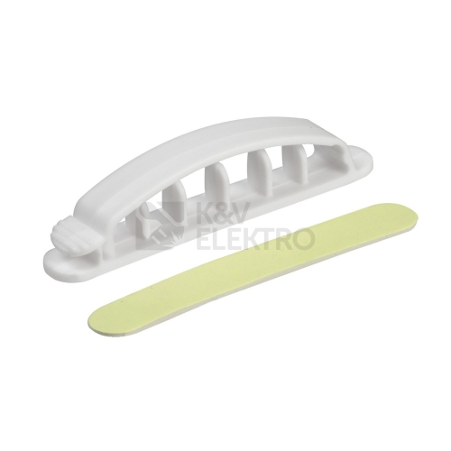 5 x Kabelové svorky, upevněné lepicí páskou, pro vedení malých svazků kabelů na stole nebo pod stolem. Jednoduchý způsob, jak uspořádat kabely na stole nebo je schovat pod stůl, Kapacita kabelu o průměru 6x8 mm. Otevíratelná a zavíratelná svorka, doporučené upevnění šroubem pro správu mnoha kabelů.