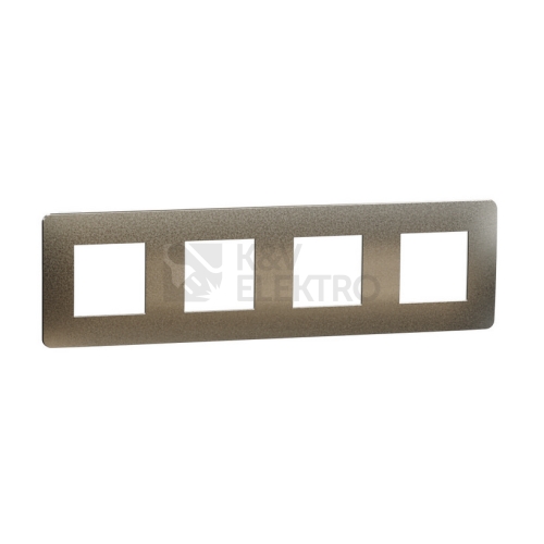 Schneider Electric Nová Unica krycí rámeček NU280850 je v barvě bronze Jelikož je tento krycí rámeček vyroben z polykarbonátu, termoplastického materiálu stabilizovaného ABS-UV, je spolehlivý a odolný. Tento krycí rámeček je čtyřnásobný Kromě toho dosahuje úrovně ochrany IK04, která může pomoci chránit před nárazem. Také je šetrné k životnímu prostředí, přičemž je odolné vůči UV záření, acetonu, alkoholu, čpavku, bělidlu, tekutému mýdlu, oleji, benzínu, kapalině na čištění oken. Tento krycí rámeček také neobsahuje SVHC (látky vzbuzující mimořádné obavy). Tento krycí rám patří do designové řady Unica Studio Metal. Navíc splňuje normy IEC 60669-1, IEC 60884-1. Na šířku měří 298 mm. Výška 85 mm. Hloubka 10 mm. Kromě toho neobsahuje halogeny, což je prospěšné pro vaše zdraví. Se 4 x 2 moduly. Režim upevnění tohoto zařízení je nacvaknutí. A výrobek váží 0,063 kg. Nová Unica je vybavena inovativními funkcemi, které přenášejí tuto řadu do chytrých domácností budoucnosti. Vítejte v novém modelu Unica - neodolatelném, krásném a inovativním.