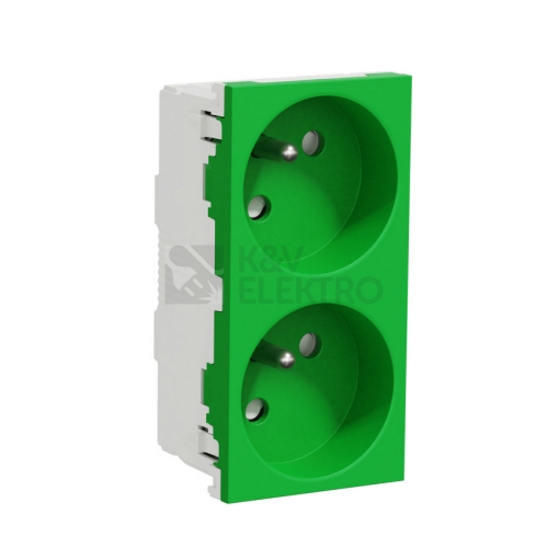 Schneider Electric New Unica socket-outlet NU306906 is a mechanism in color green with 2 socket outlets. The outlet pole configuration of this socket-outlet is 2P + E with shutters, ensuring safety protection. And this device is French standard. The dielectric strength level, namely the voltage that the material this socket-outlet uses can withstand for a given wall thickness before dielectric breakdown or electrical discharge, is 2000V. Its rated current is 16A. The fixing mode of this device is clip-in. It is 45 mm in width, It is 90 mm in height, and 39.4 mm in depth with an embedding depth of 30 mm. Its matching mounting box can be recessed into the surface of the wall with flush type. The surface finish is glossy, delivering an elegant and high-end feeling to a room. The IP rating of this device is IP21D which is very high. Besides, it reaches IK04 protection level, which can help protect against impact. This socket-outlet has screwless terminals connection terminals. This socket-outlet is NF certified. As a green premium product, this device is environmentally friendly. This socket-outlet is mercury free New Unica includes a suite of new designs, colors and materials. Users benefit from beautiful design that match their style and innovative products. New Unica is designed with clever features to be flexible, easy to understand and quick to install providing solutions for all customers requirements.