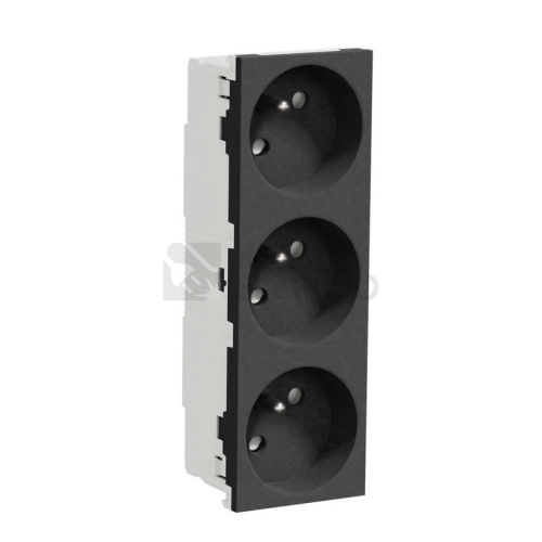Schneider Electric New Unica socket-outlet NU307954 is a mechanism in color anthracite with 3 socket outlets. The outlet pole configuration of this socket-outlet is 2P + E with shutters, ensuring safety protection. This device respects the French standard. The dielectric strength level, the voltage that the material this socket-outlet uses can withstand for a given wall thickness before dielectric breakdown, is 2000V. Its rated current is 16A. The device's fixing mode is clip-in. It is 45 mm in width, 135 mm in height and 39.4 mm in depth with an embedding depth of 30 mm. Its matching mounting box can be recessed into the surface of the wall with flush type. It benefits from an elegant matt finishing, constituting an added-value for your interior design. The IP rating of this device is IP21D which is very high. Besides, it reaches IK04 protection level, which can help protect against impact. Its connection terminals are screwless terminals.. The socket-outlet is made of PC, making it resistant and durable. this cover plate is NF certified. New Unica includes a suite of new designs, colors and materials. Users benefit from beautiful design that match their style and innovative products. New Unica is designed with clever features to be flexible, easy to understand and quick to install providing solutions for all customers requirements.