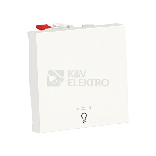 Schneider Electric Nová Unica tlačítkový ovládač NU320618LN je mechanismus v barvě bílé Jeho připojovací svorky jsou bezšroubové. Tlačítkový spínač je vyroben z Cu. Zn37, PBT (polybutylen tereftalát) GF30, PC (polykarbonát) GF10 FR, termoplast ABS-UV stabilizovaný, takže je co nejodolnější. Jeho šířka je 45 mm, výška 45 mm, hloubka 34,25 mm, hloubka zapuštění 21,15 mm, A výrobek váží 0,0207 kg. Kromě toho neobsahuje halogeny, což je prospěšné pro vaše zdraví. Je vybaven orientační kontrolkou LED. Způsob upevnění je pomocí klipů. Tento výrobek se prodává po 10 kusech. Navíc vyhovuje normě IEC 60669-1, směrnici LV, Ro. HS. Získal také certifikát AENOR, CE, EAC, NF. Také je šetrné k životnímu prostředí, přičemž je odolné vůči UV záření, acetonu, alkoholu, čpavku, bělidlu, tekutému mýdlu, oleji, benzínu, kapalině na čištění oken. Dielektrická pevnost, míra elektrické pevnosti materiálu jako izolantu, je 2000 V. A jeho jmenovitý proud je 10 A. Tento tlačítkový spínač také neobsahuje SVHC (látky vzbuzující mimořádné obavy). Povrchová úprava je lesklá a dodává místnosti elegantní a špičkový dojem.