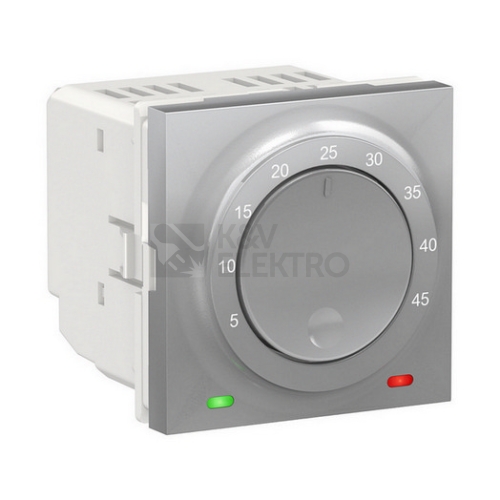 Schneider Electric Nová Unica podlahový termostat NU350330 je mechanismus v barvě aluminium. Jeho připojovací svorky jsou šroubové. Režim upevnění tohoto zařízení je nacvaknutí. Kromě toho je na povrchu označení L+N, OUT, senzor. Má šířku 45 mm, výšku 45 mm, hloubku 47 mm a hloubku zapuštění 33 mm, Její odpovídající montážní krabice může být zapuštěna do povrchu stěny s montáží pod omítku. Podlahový termostat je vyroben z PC (polykarbonátu) GF10 FR, kovu, termoplastu stabilizovaného ABS-UV, takže je co nejodolnější. Kromě toho dosahuje úrovně ochrany IK01, která může pomoci chránit před nárazy. Dosahuje také stupně ochrany IP20. Také je šetrné k životnímu prostředí, přičemž je odolné vůči UV záření, acetonu, alkoholu, čpavku, bělidlu, tekutému mýdlu, oleji, benzínu, kapalině na čištění oken. Pro regulaci teploty, kromě toho je jmenovité provozní napětí tohoto zařízení 230V. Navíc splňuje normu směrnice EMC, EN 607320-2-9, směrnice NN. Kromě toho neobsahuje halogeny, což je prospěšné pro vaše zdraví. A typ ovládání tohoto podlahového termostatu je elektronický regulátor. Teplota zobrazovaná na podlahovém termostatu je velice přesná, s přesností měření 0,5 °C.