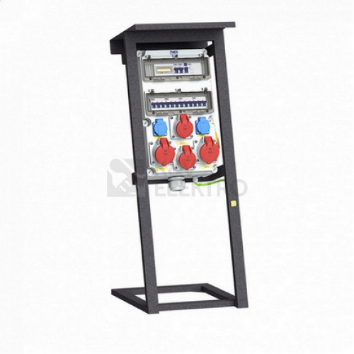 Složení zásuvek: 2x zás. 32A/400V/5p 2x zás. 16A/400V/5p 4x zás. 230V s ochr. kolíkem (česká) Jistění: 2x jistič 32A/3P/B 10 kA 2x jistič 16A/3P/C 10 kA 2x jistič 16A/1P/C 10 kA Proudový chránič 1x FI 63A/4P/30mA 10kA typ A Elektroměr: 1x podružný elektroměr 80A Hlavní přednosti: připraveno k okamžitému použití přístroje se zkratovou odolností 10kA vysoce odolný a velmi stabilní podstavec rozměr: 380 x 1010 x 420mm pouzdra kombinací z nárazuvzdorného a UV stabilního polykarbonátu odolné vůči stárnutí a vysokým teplotám, chemicky odolné bezhalogenní, samozhášivé uzamykatelný vačkový vypínač zásuvky s bezšroubovou technologií QUICK CONNECT dodatečně je možné osadit elektroměr pro podružné měření Další údaje: DIN lišty: 26 (2 řady po 13) modulů Počet okének: 2 Podstavec: ocelový, žárově zinkovaný Provedení: Staveništní Použití: Přenosné samostatně stojící Madlo: NE Stupeň ochrany krytem: IP44 Jmenovitý proud: 63A Jmenovité napětí: 400V Teplotní rozsah použití: -25°C + 40°C V souladu s normou ČSN EN 61439-3 Vývodka: 1x MV-40 IP68 Max. průměr vodiče: 22-32mm Vačkový vypínač: 1x 63A/3P (uzamykatelný)